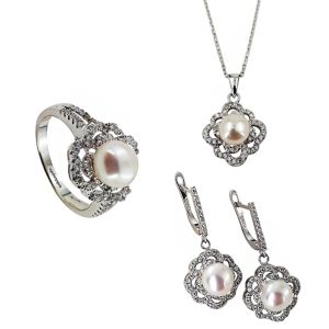 925 ayar gümüş üzerine rodyum kaplamalı ve gerçek incili, mine model, zirkon taşlı inci üçlü takı seti. Zirkon taşlarla süslenmiş olan modern tasarımlı gümüş üçlü takı seti,günümüzün trendlerine uygun olarak üretilmiştir. Kolye, küpe ve yüzükten oluşan zirkon taşlı ve mine model gümüş inci üçlü set tasarımında, zirkon taşlar mıhlama yapılıp gerçek inci kullanılarak üzeri rodyum kaplamayla tamamlanmıştır. Küpenin kilit kısmı İngiliz kilit sisteminde üretilmiştir, bu nedenle kolay açılıp düşme yapmaz. Her zaman beğenerek kullanabileceğiniz ve sevdiklerinize hediye edebileceğiniz özel ve şık bir gümüş takı setidir. Zincir dahil fiyattır. Diğer gümüş inci üçlü takı seti modelleri ve fiyatları için inci set kategorimizi ziyaret edebilirsiniz.